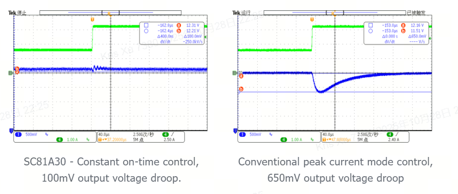 The series adopts a Constant On-Time (COT) control topology. An external RCC ripple injection circuit ensures stable DCDC operation across a wide range of applications while delivering optimal transient response. No external VCC capacitor is needed, simplifying PCB layout and aligning with the trend of miniaturization and high performance in industrial equipment. Compared to traditional peak current control modes, this design enables faster transient response.
